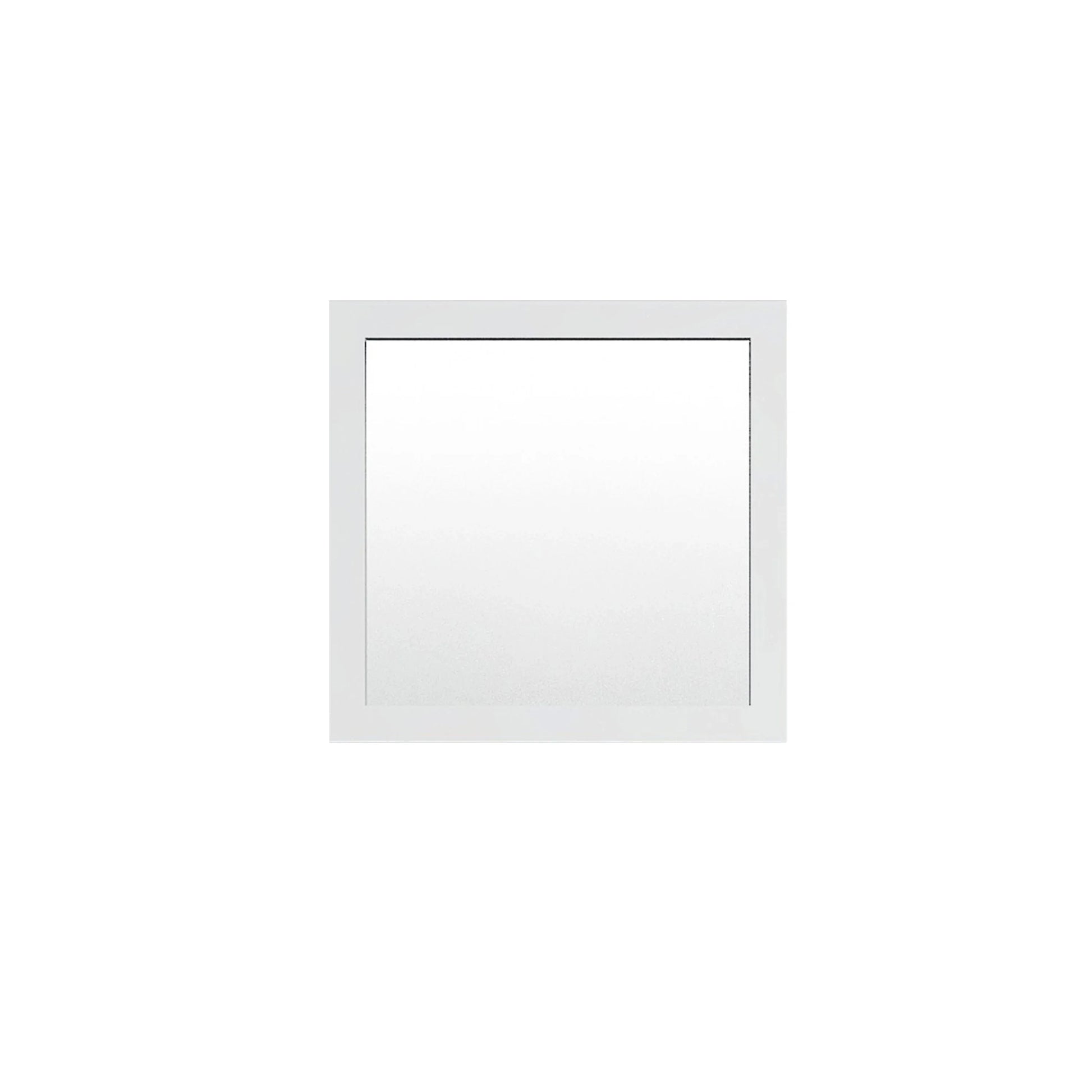 The generous 30" x 28.38" dimensions provide ample reflection space, while the sleek matte white finish adds a fresh, sophisticated touch to your vanity area. Designed for flexibility, this mirror can be mounted either horizontally or vertically to suit your space and design preferences.