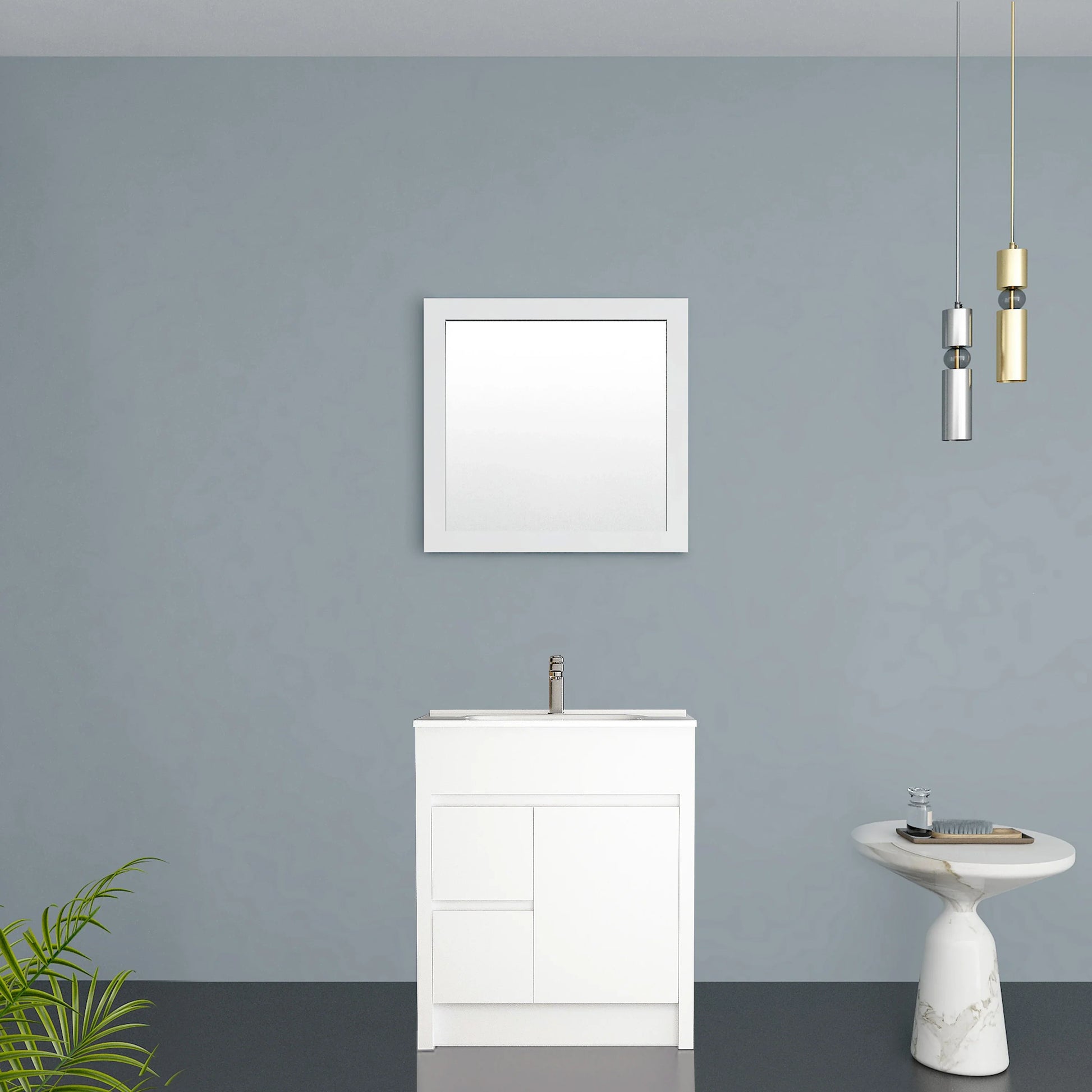 Elevate your bathroom aesthetic with this elegant 30-inch matte white framed mirror. Featuring a clean, contemporary design with a crisp white MDF frame, this versatile mirror complements modern and transitional bathroom styles beautifully.