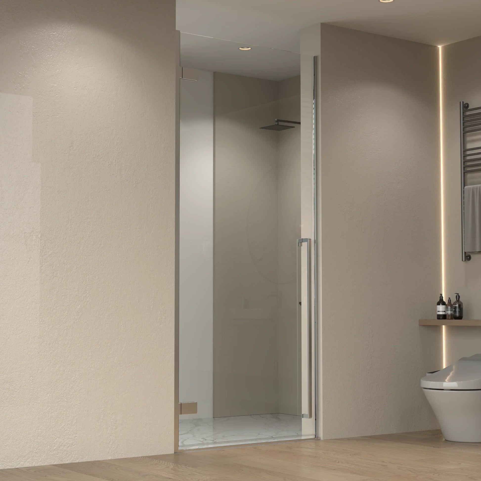 The reversible design offers flexible installation options, allowing you to configure the door to swing left or right based on your bathroom layout. The smooth pivot mechanism ensures quiet, effortless operation while the premium chrome finish adds a polished, contemporary look that complements any décor.