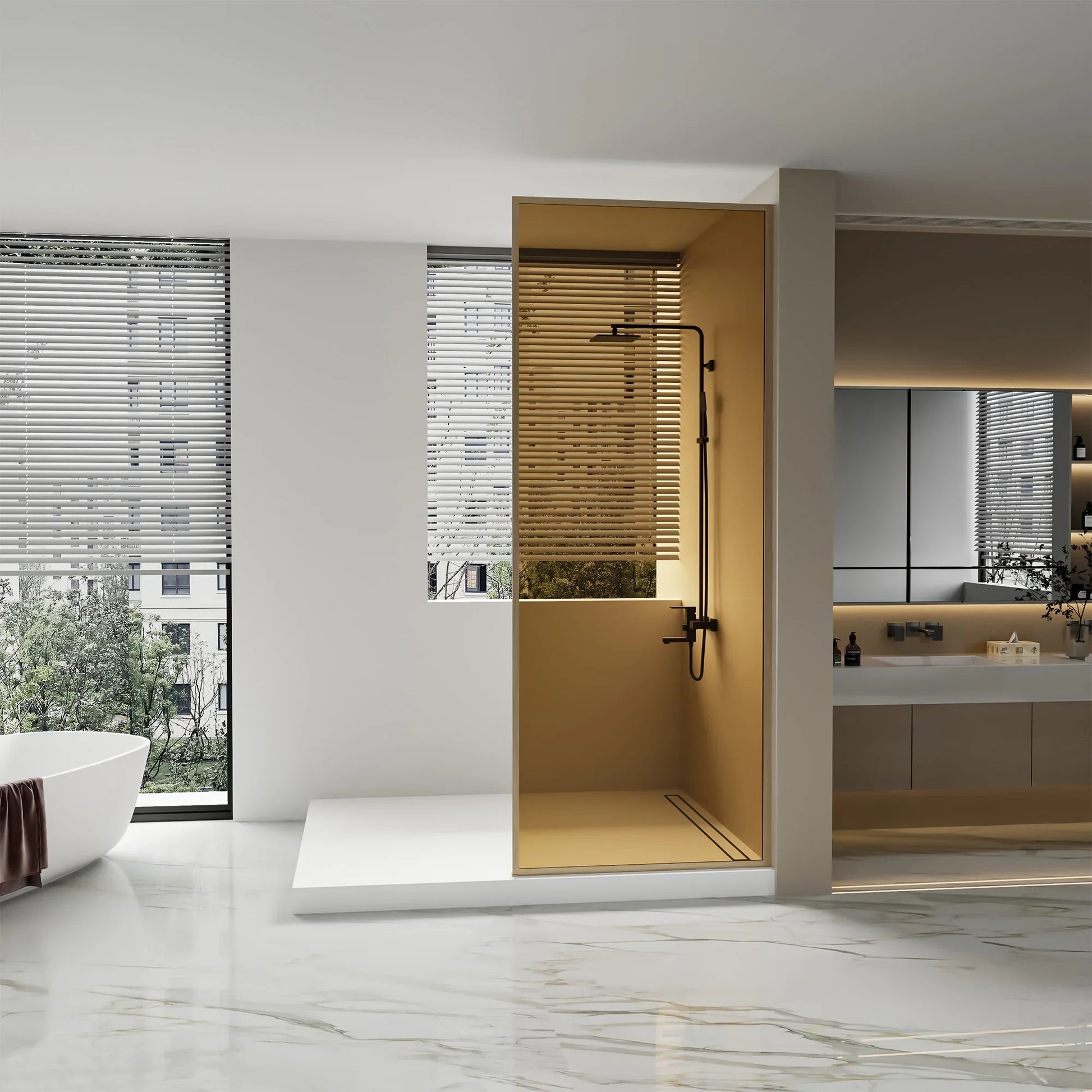 Crafted with 8mm tempered glass for superior durability and safety, this walk-in panel offers both style and substance. The reversible design ensures flexible installation options, while the frameless interior provides easy cleaning and maintenance. The warm brown tint adds privacy while allowing natural light to filter through beautifully.