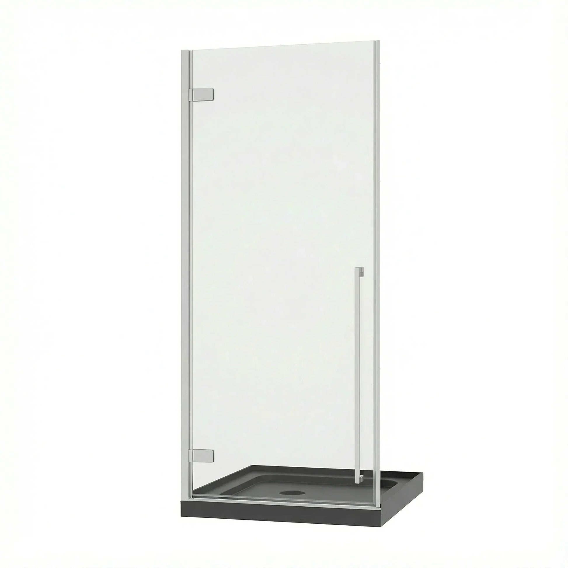 36" x 79" Chrome Pivot Shower Door with 36" Glossy Black Acrylic Base