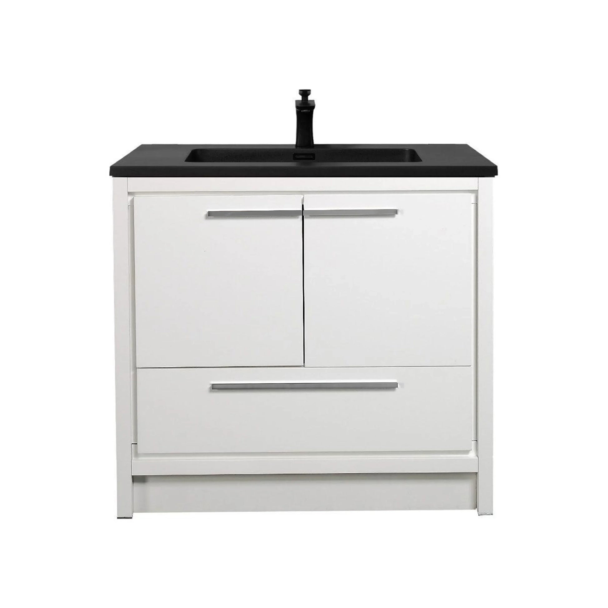 36" Glossy White Freestanding Bathroom Vanity with Black Engineered Quartz Countertop