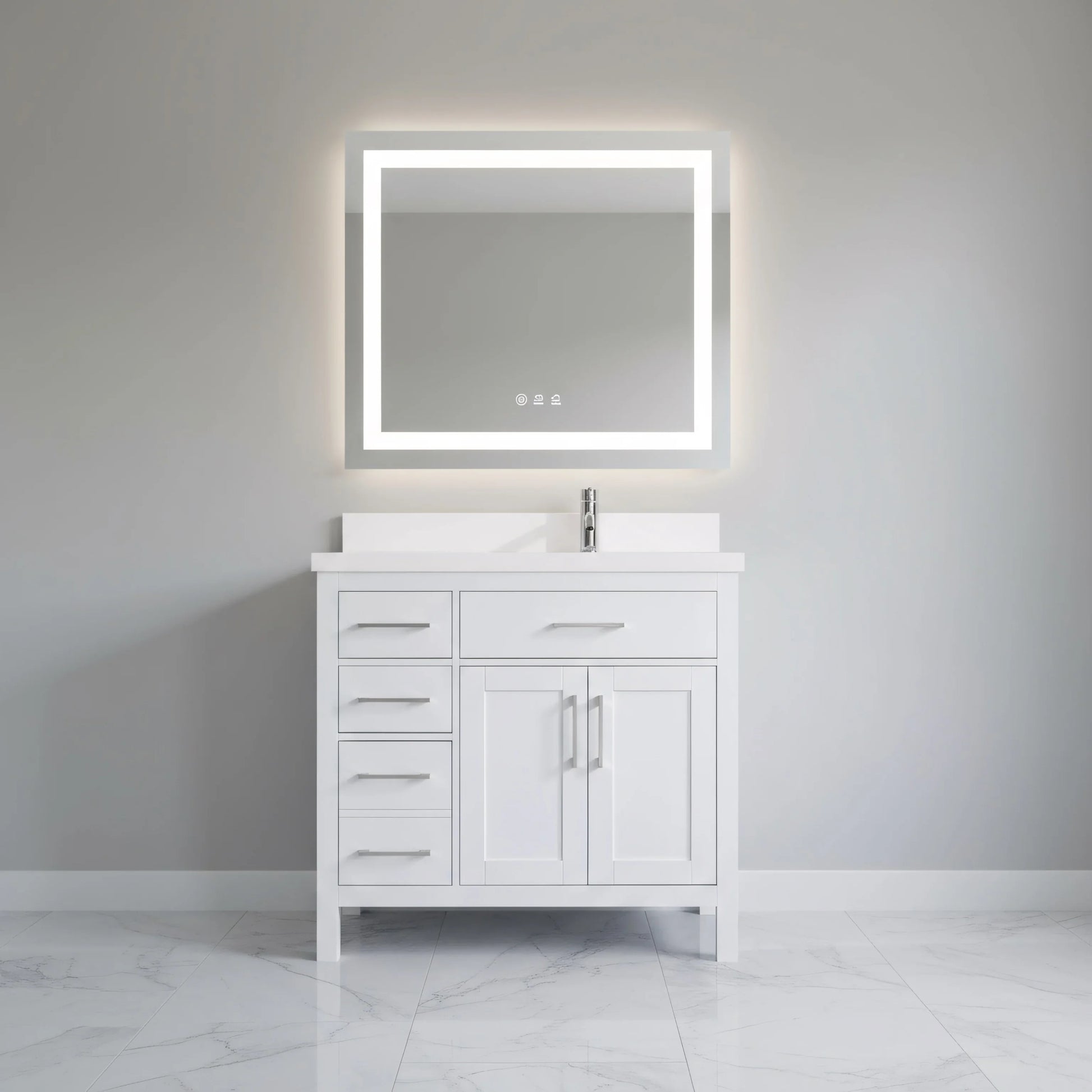 36" White Freestanding Single Sink Bathroom Vanity with Snow White Quartz Countertop
