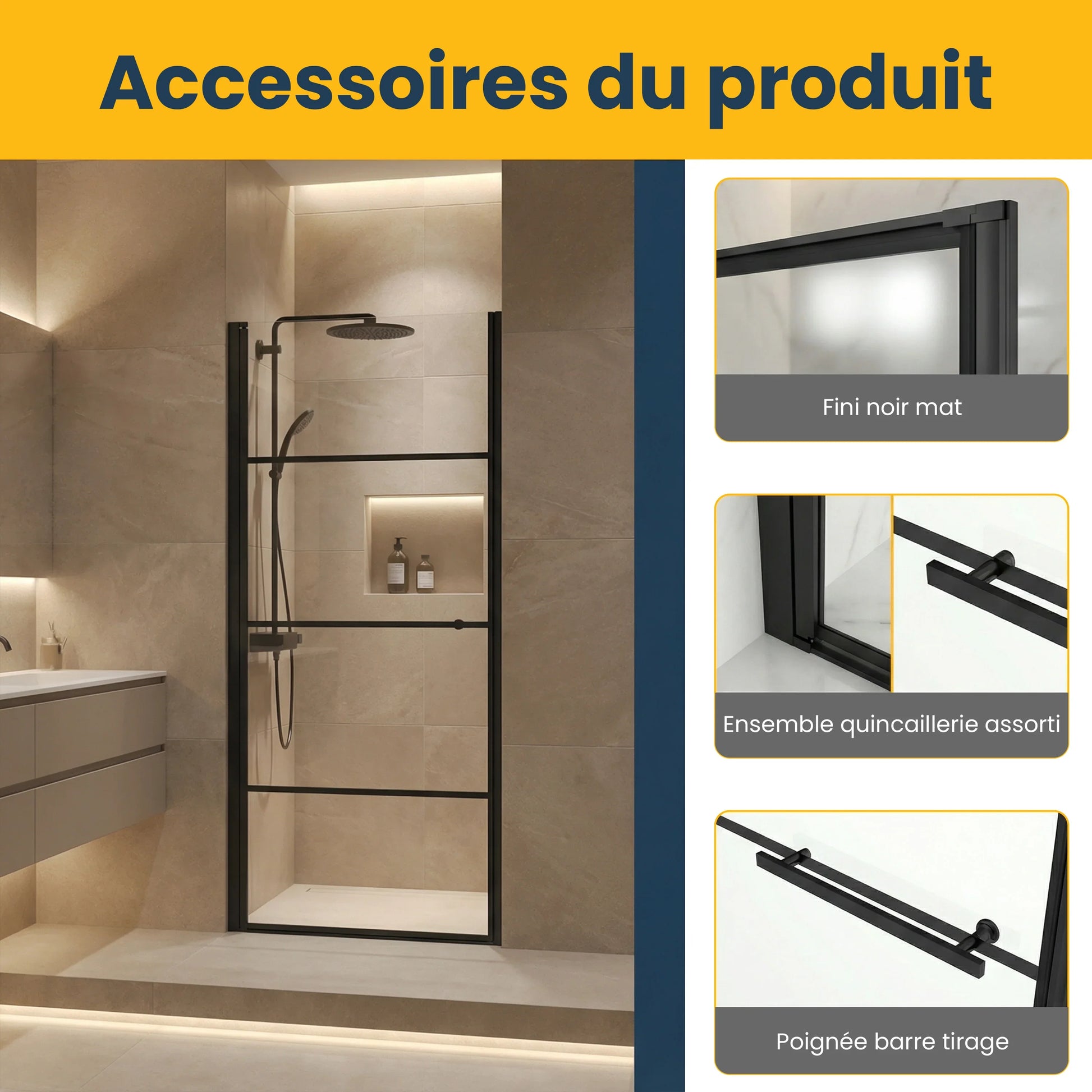 - Matte black hardware with linear design