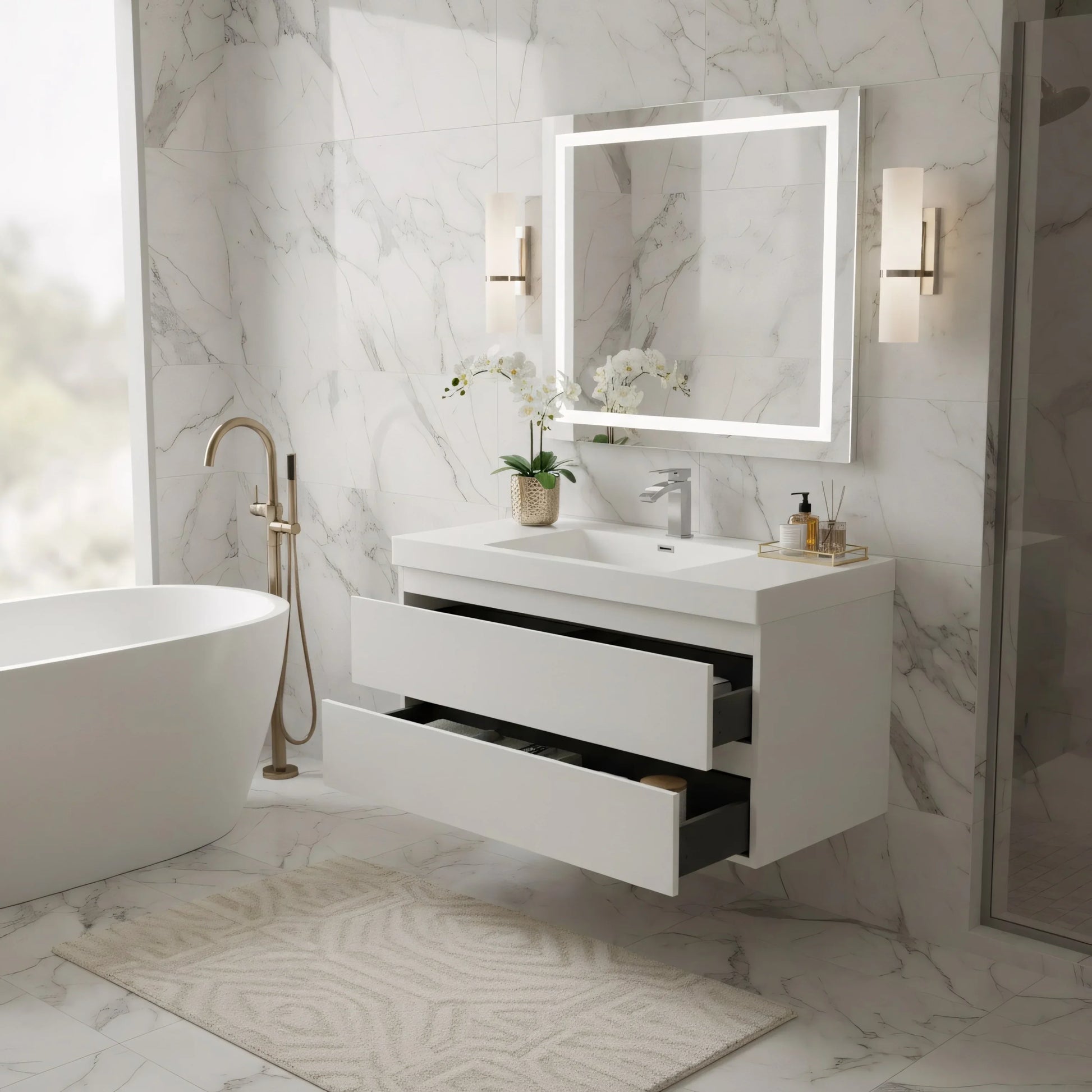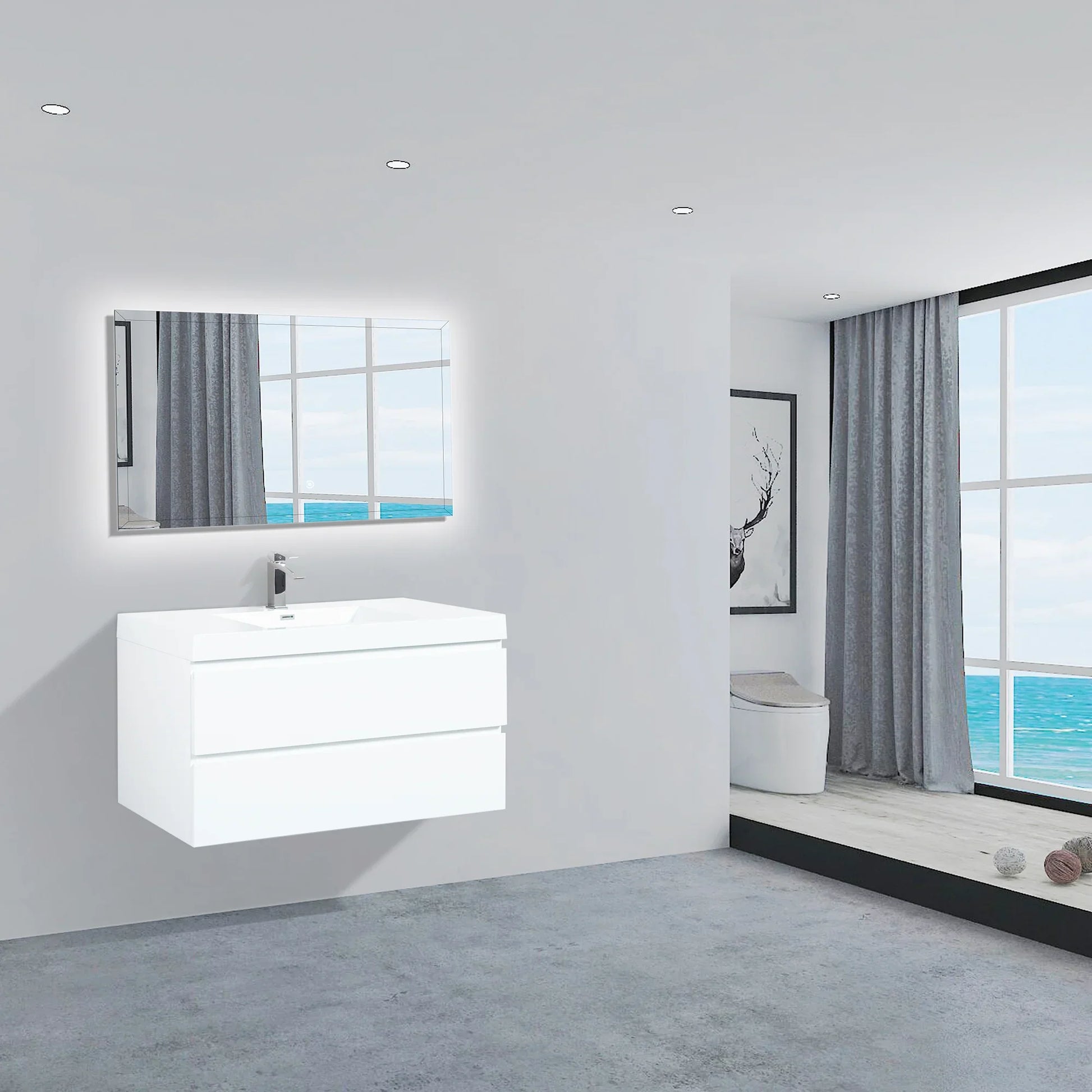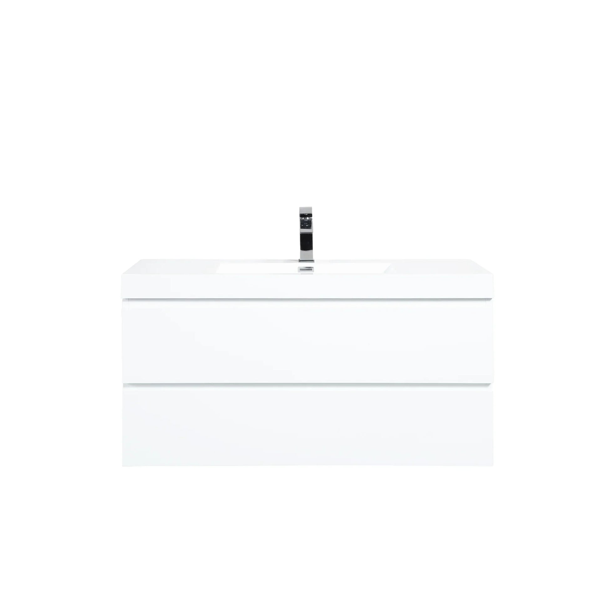 42" Glossy White Wall Mount Bathroom Vanity with White Polymarble Countertop