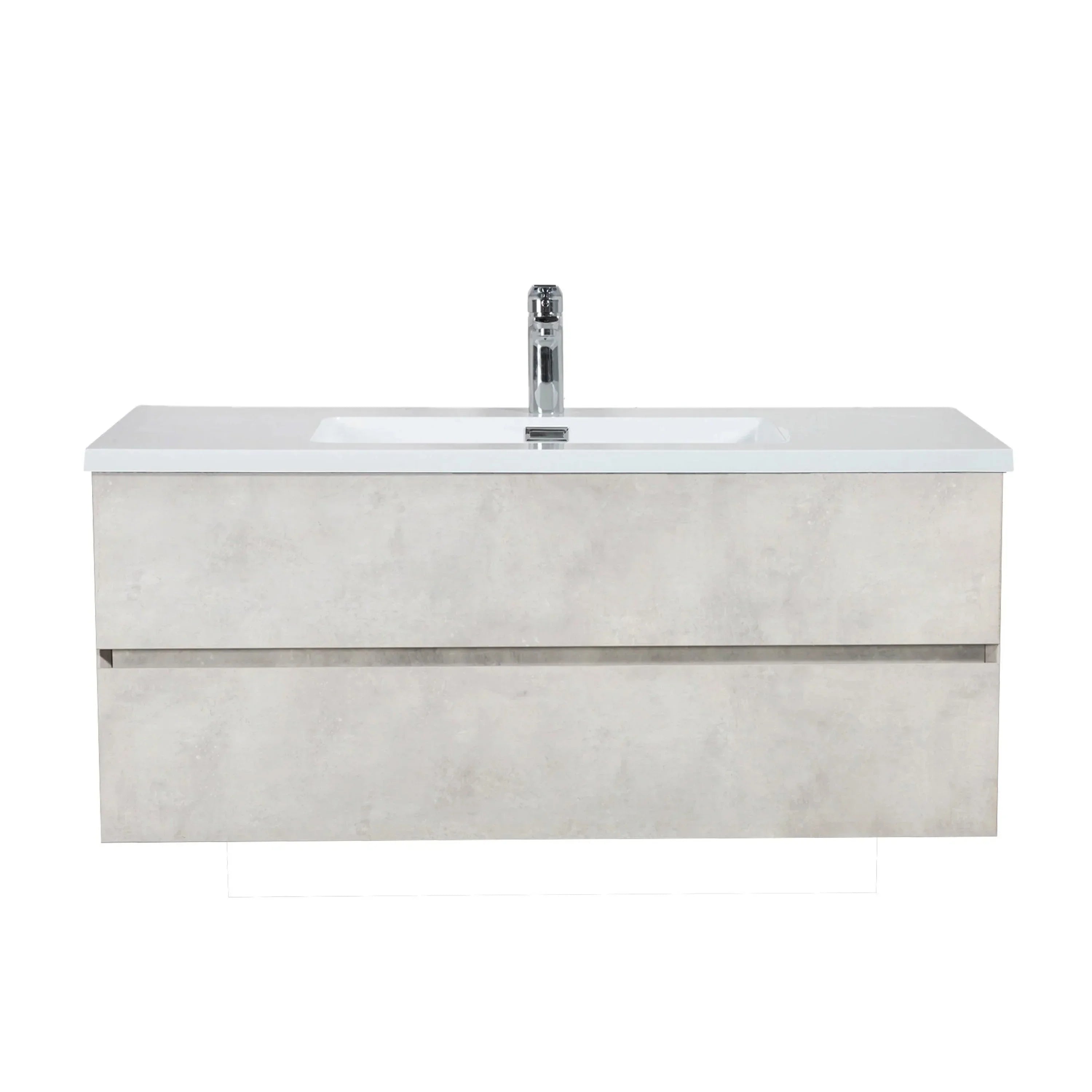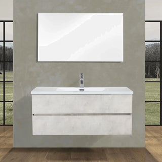 48" Grey Wall Mount Single Sink Bathroom Vanity with White Polymarble Countertop