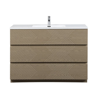 Streamline your bathroom upgrade with this 48-inch taupe oak freestanding vanity, designed for a perfect mix of warmth, simplicity, and storage. Topped with a sleek white polymarble countertop and integrated sink, it's ideal for modern spaces seeking a soft, natural touch.
