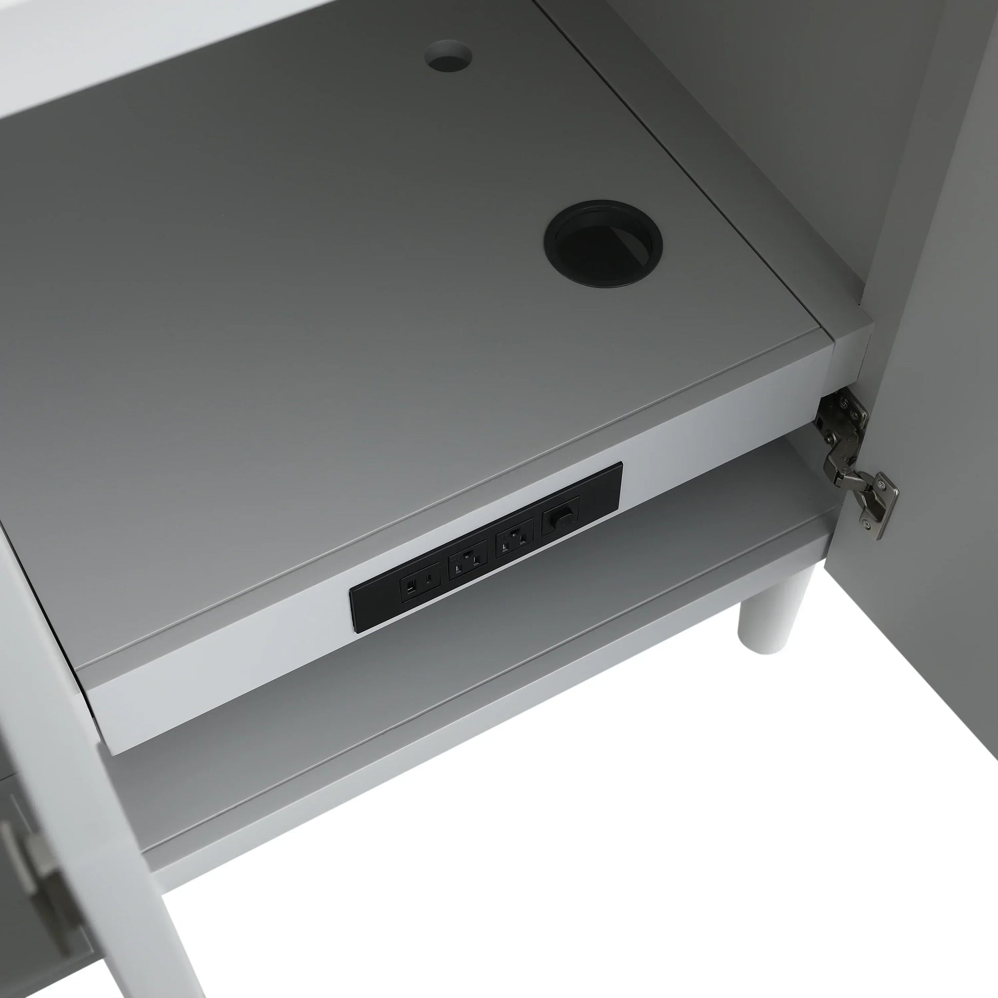 Integrated sliding power bar: Built-in outlets and a hair dryer holder for added convenience