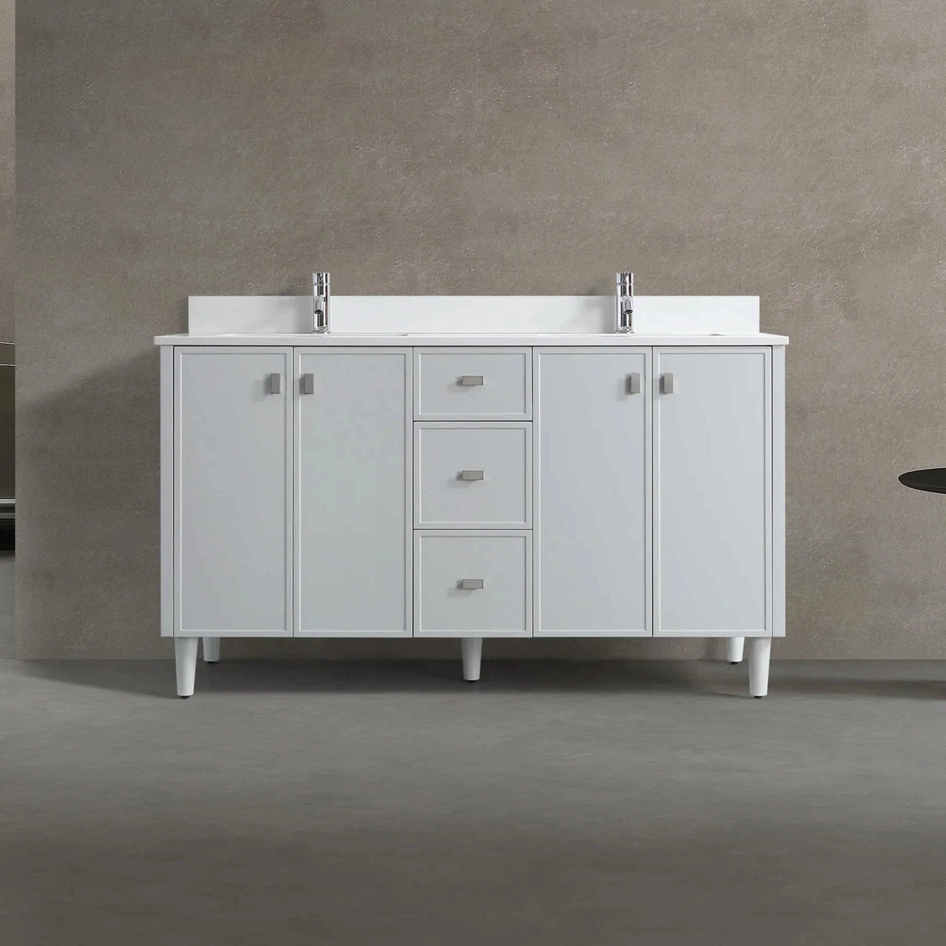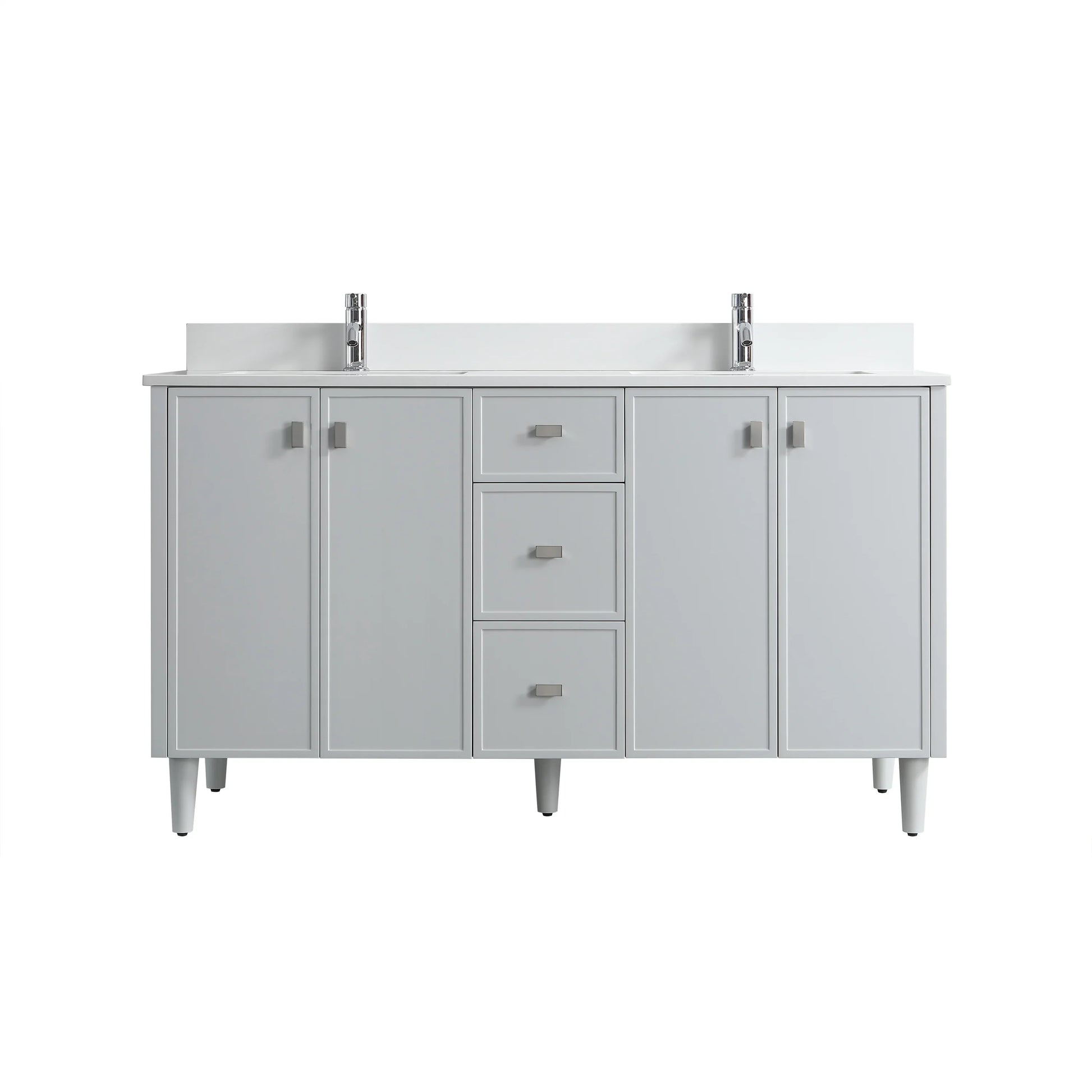 60" Hampton Grey Double Sink Freestanding Vanity with Pure White Quartz Countertop