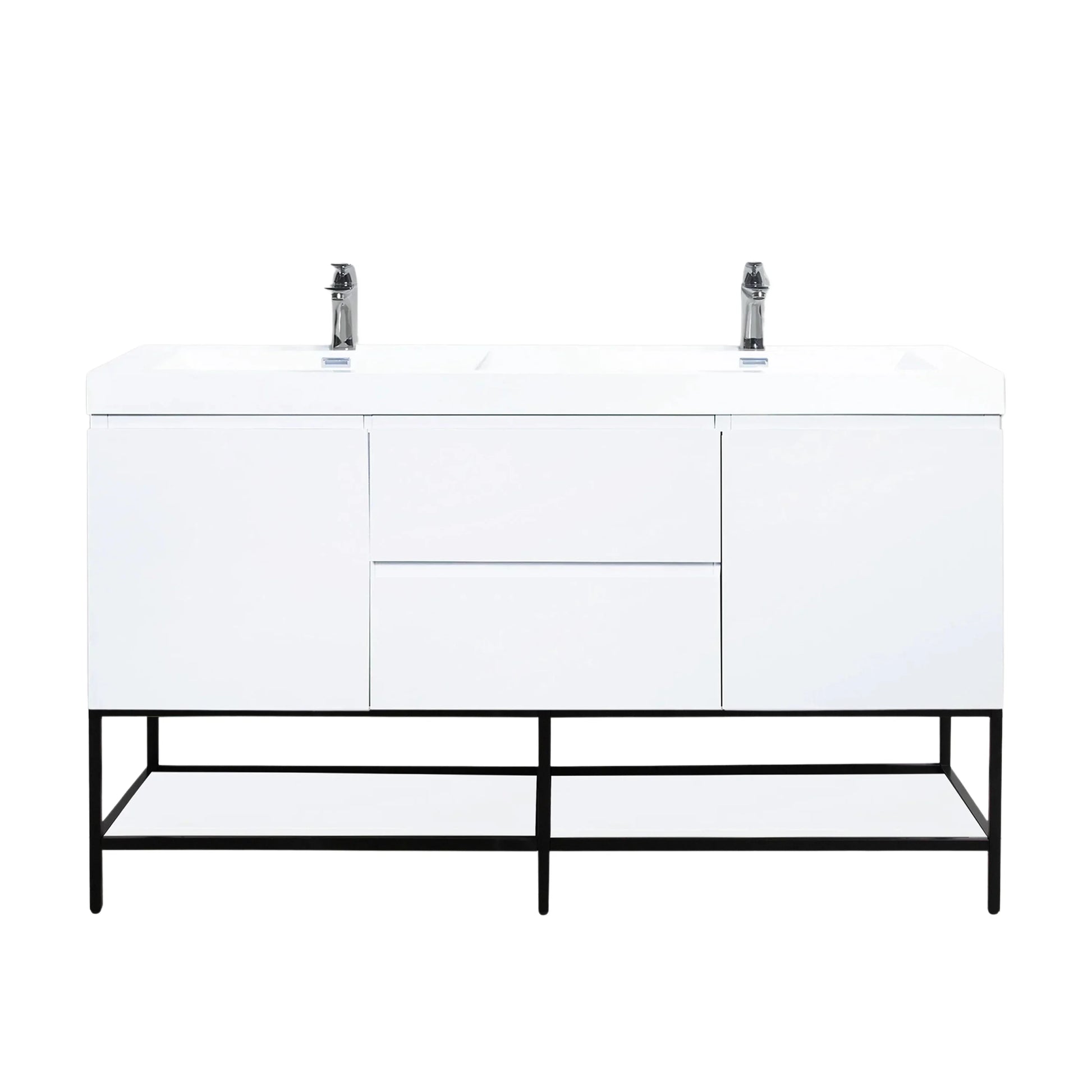 60" Glossy White Wall Mount Double Sink Bathroom Vanity with White Polymarble Countertop