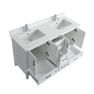 72" White Freestanding Double Sink Bathroom Vanity with White Quartz Countertop