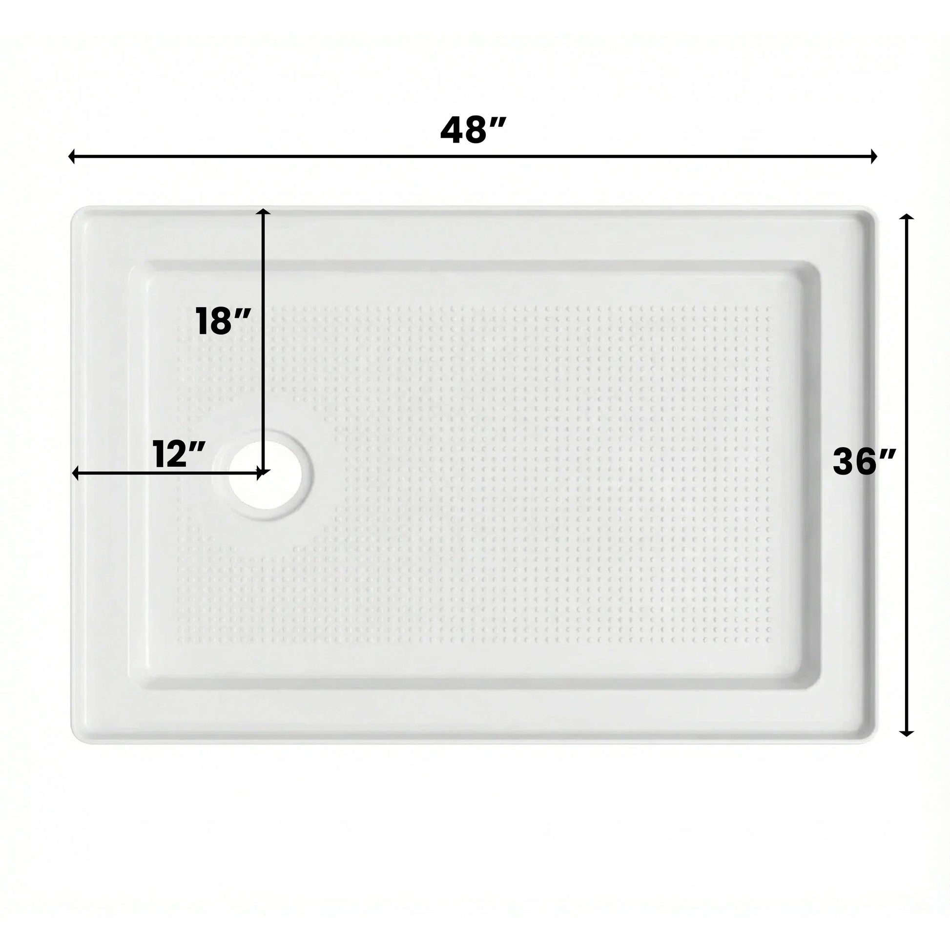 48" x 36" White Acrylic Shower Base with Left Drain - 2 Wall Setup