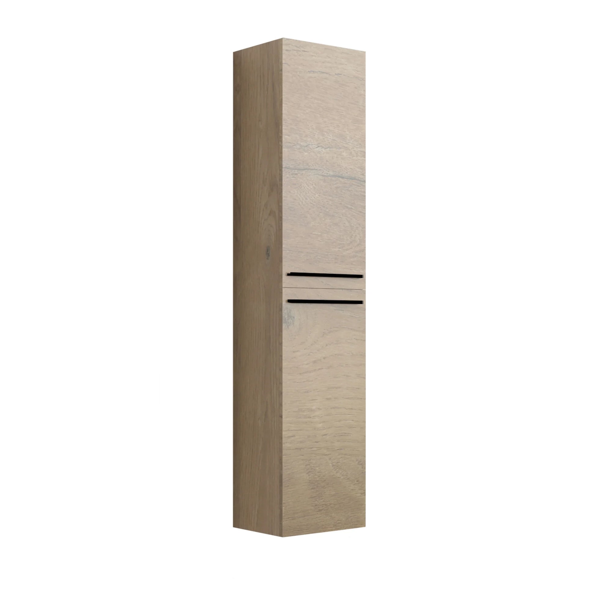 A new collection of Golden Elite wall-mounted linen cabinets, Fiory adds a contemporary look to any bathroom. Designed to provide you with great storage space. Soft-closing cabinet doors with matte black handles provide a quiet and elegant experience. Fiory linen cabinets feature an elegant melamine rough oak veneer. Its simple, minimalist look is sure to modernize and enliven any bathroom design, whether dark, light or somewhere in between, and contrasts beautifully with any cabinet style for a standout look. Quality and craftsmanship, and polished to enhance the appearance. Quick and easy to assemble.