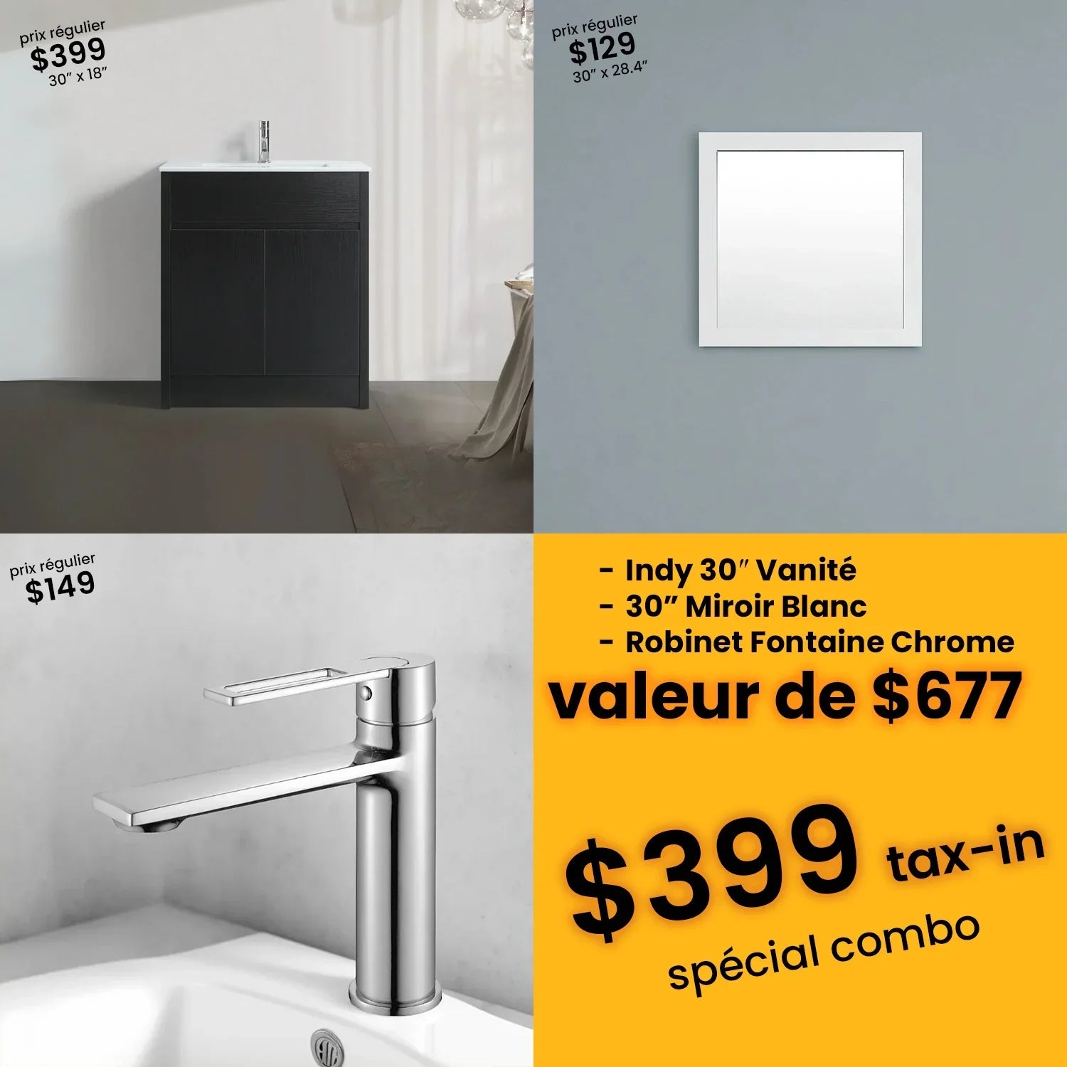 Whether you're outfitting a powder room, condo, or rental unit, this bundle delivers everything you need — sleek style, smart storage, and easy installation — for just $399 tax-in. A complete solution that looks great and saves you money.