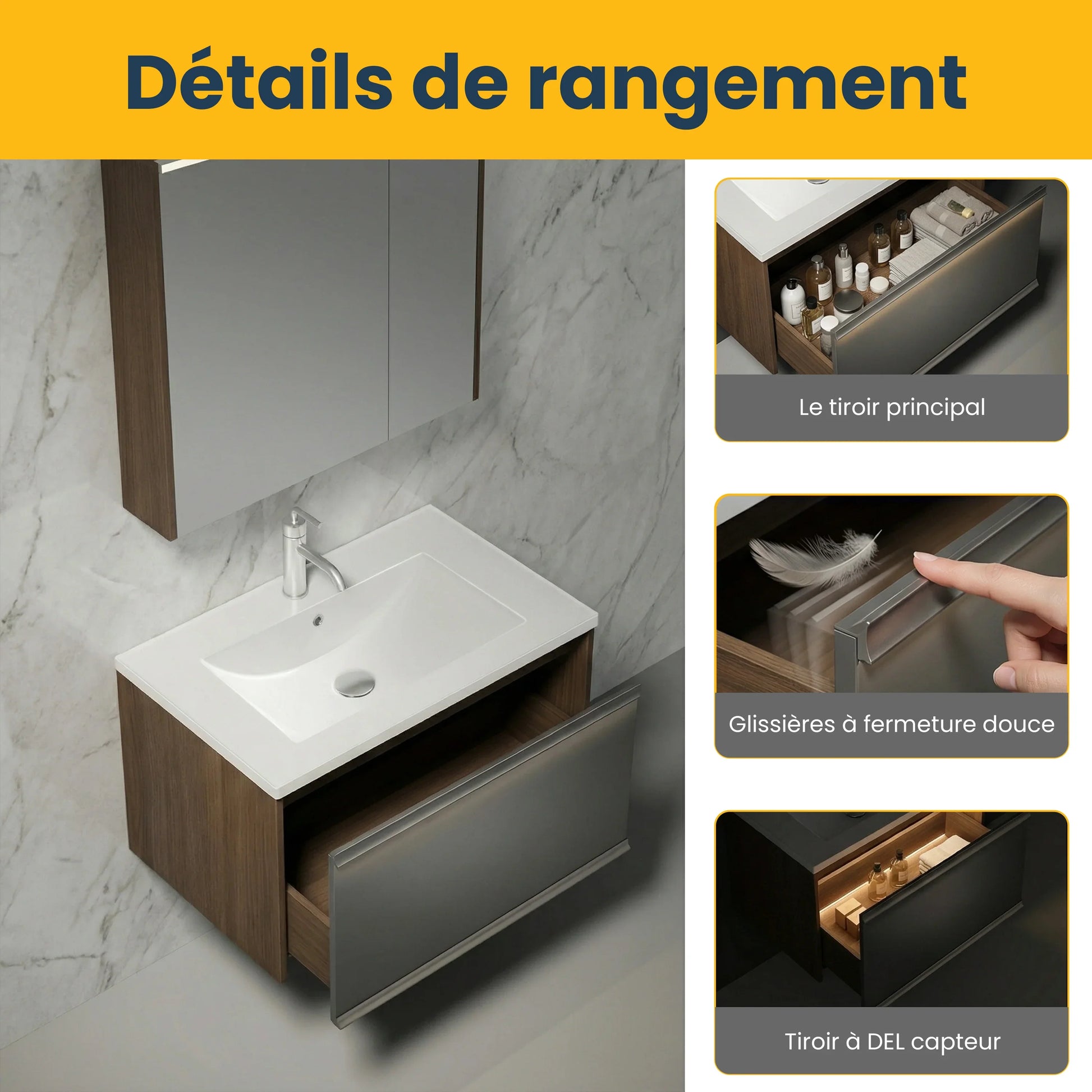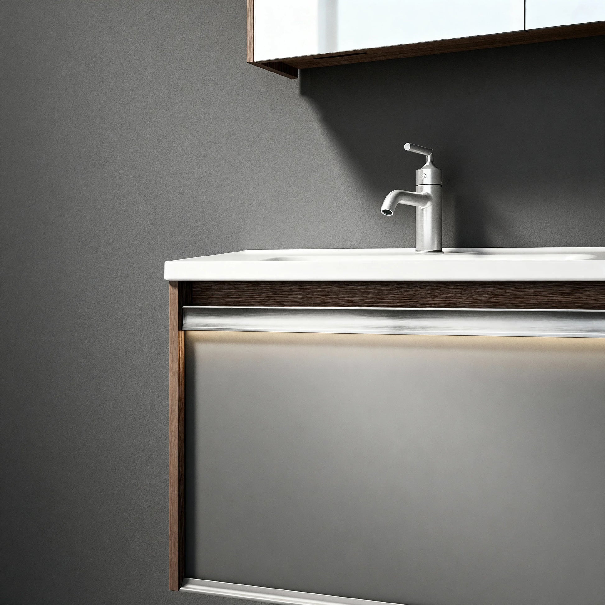 This collection stands out for its luxury, bringing a fresh, contemporary look to any bathroom. The vanity’s floating design not only saves space but also enhances the room's openness, making it ideal for bathrooms of all sizes.