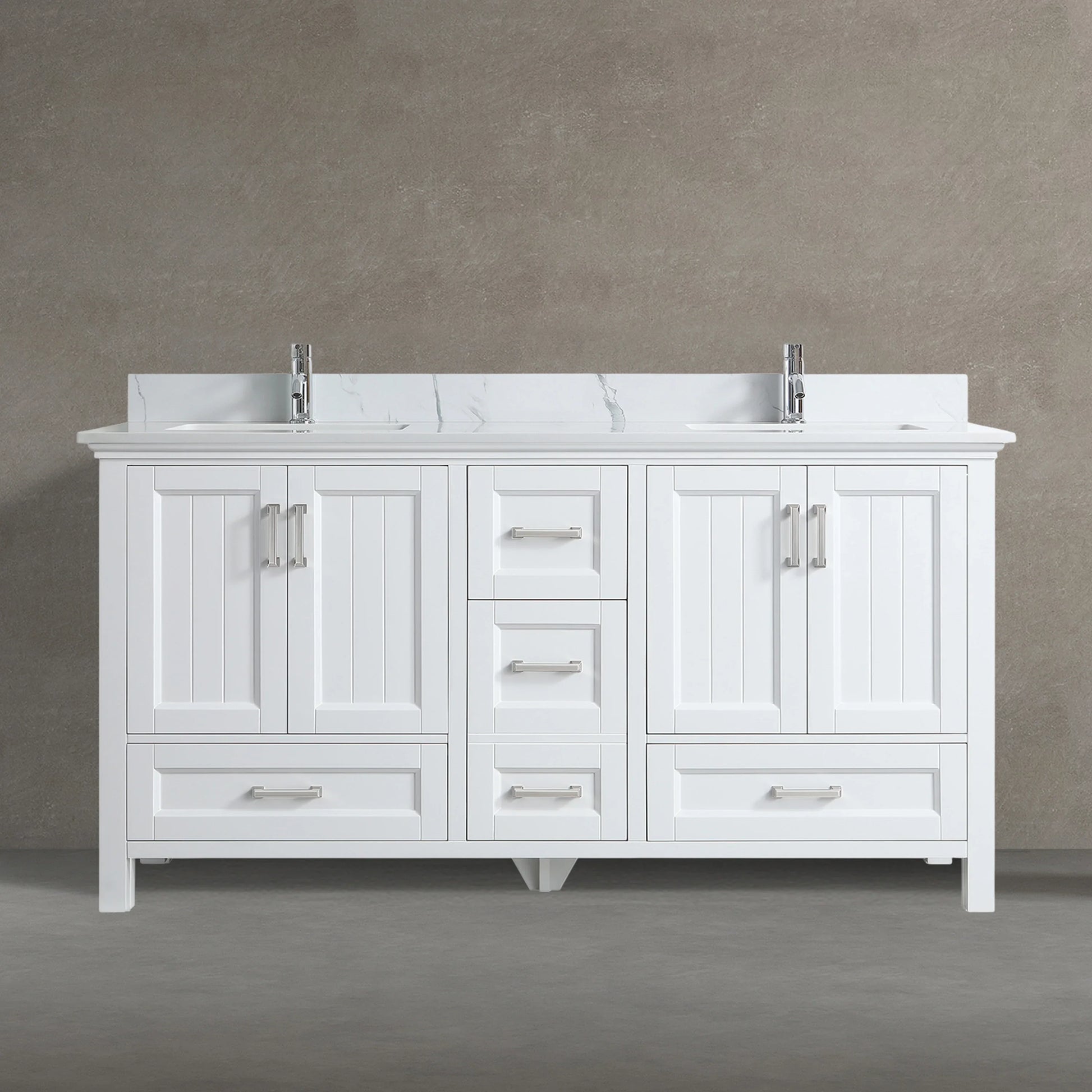 72" White Freestanding Double Sink Bathroom Vanity with Engineered Calcutta Marble Countertop