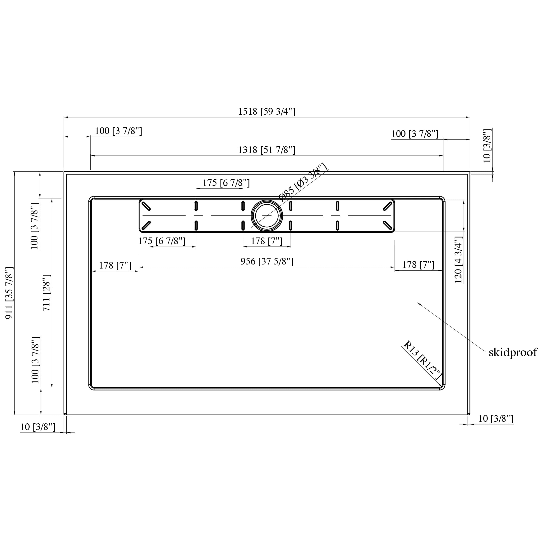 60" x 36" White Acrylic Rectangular Shower Base, 3-Wall Installation with Linear Drain