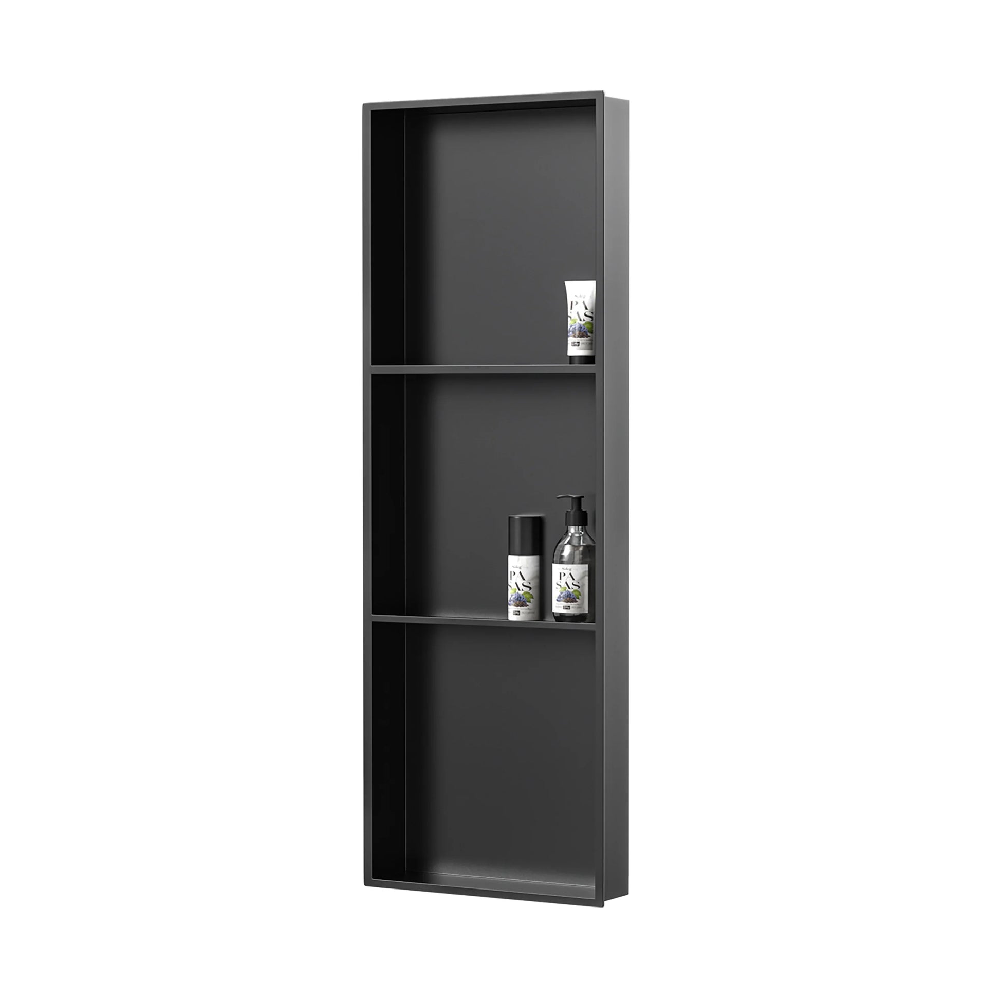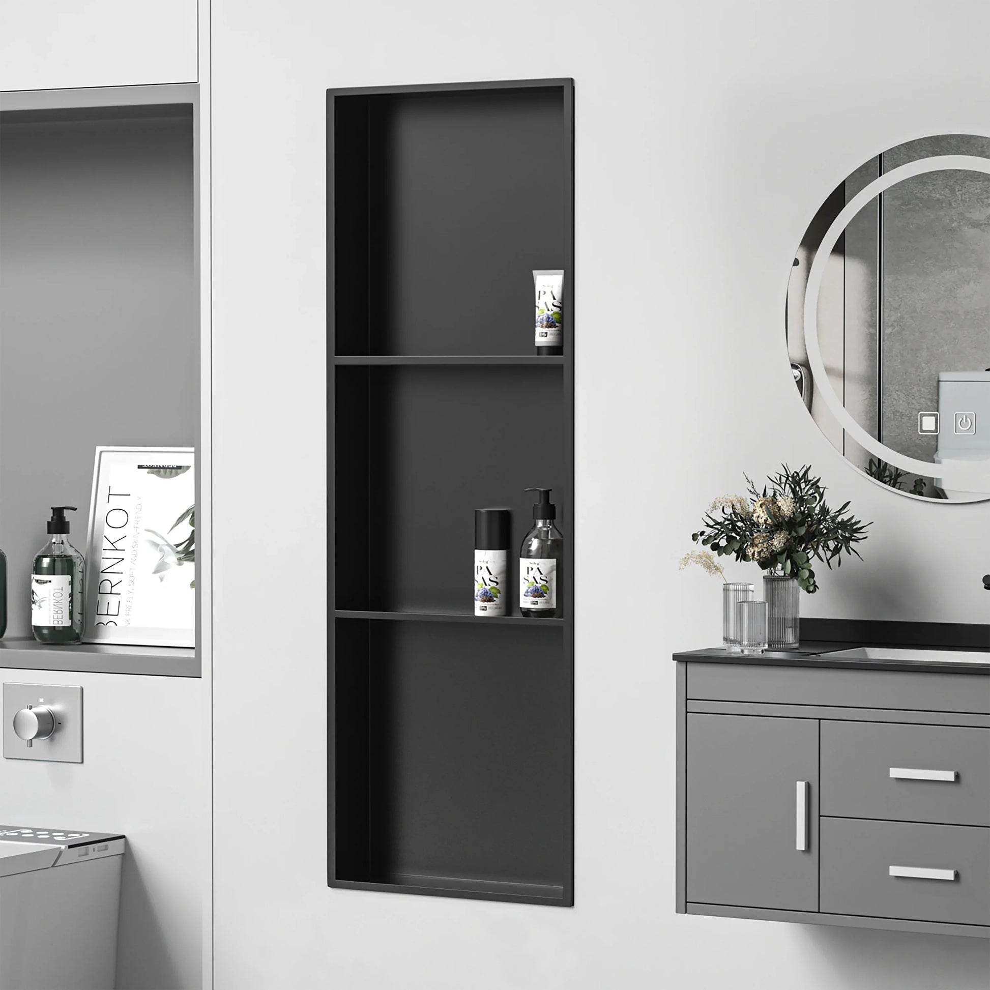 12" x 36" Black Stainless Steel Shower Niche, 3 Compartments